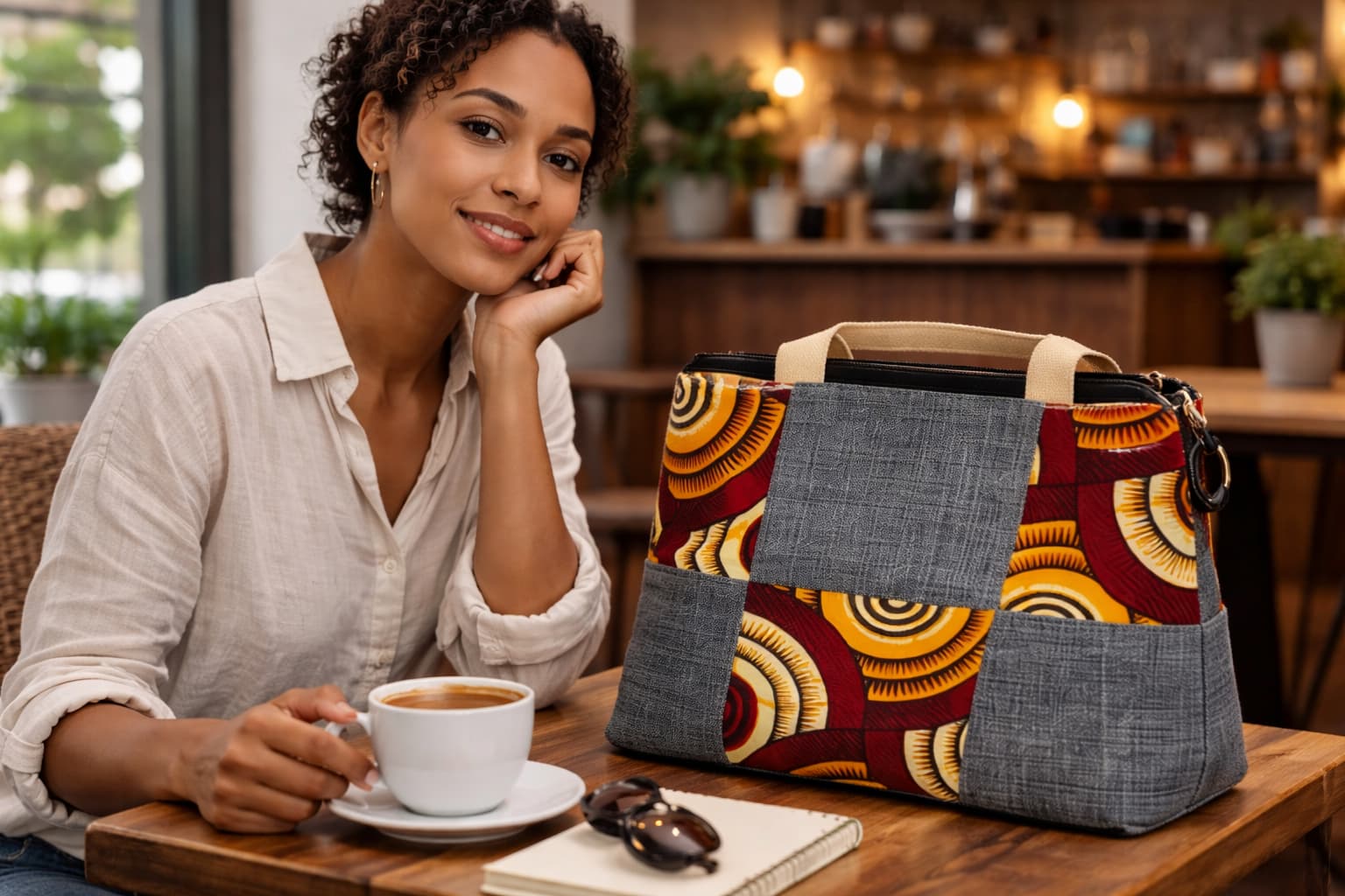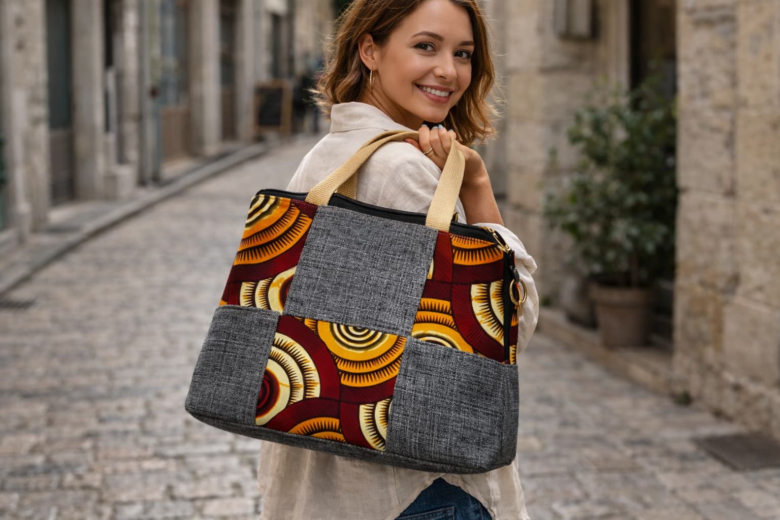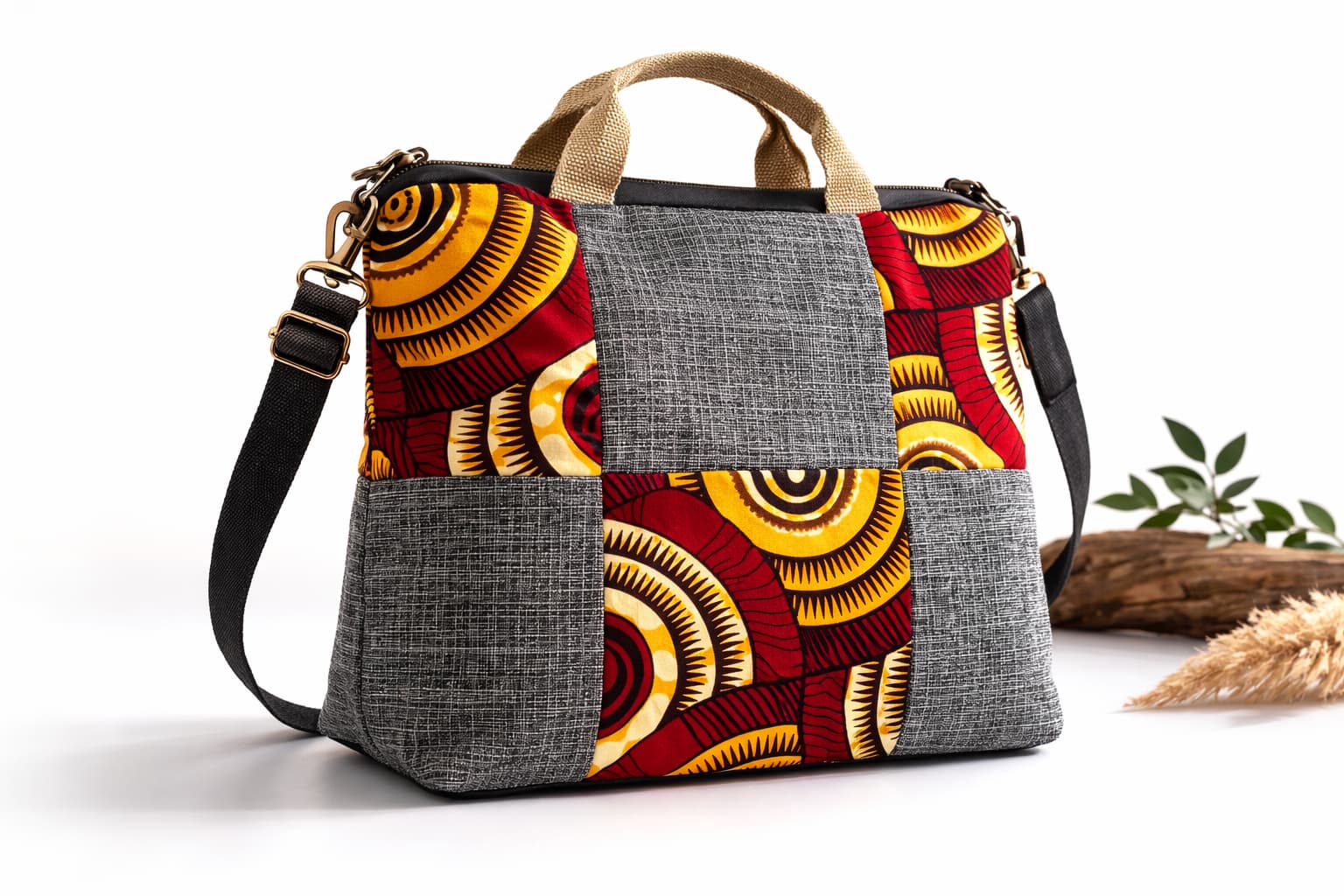 Ce sac se distingue par son assemblage de tissus aux motifs graphiques et textures contrastées. Chaque pièce est réalisée à la main à partir de textiles soigneusement sélectionnés, offrant un rendu unique et une vraie identité visuelle.
